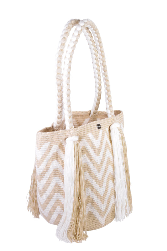 Handmade Cream and Bone Tote Bag with Elegant Tassels