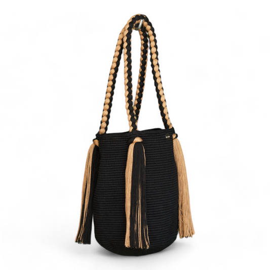 Handmade Black and Beige Tote Bag With Long TasselsRegular price $120.00 AUDRegular priceUnit price / per$0.00 AUDSale price $120.00 AUDSold out