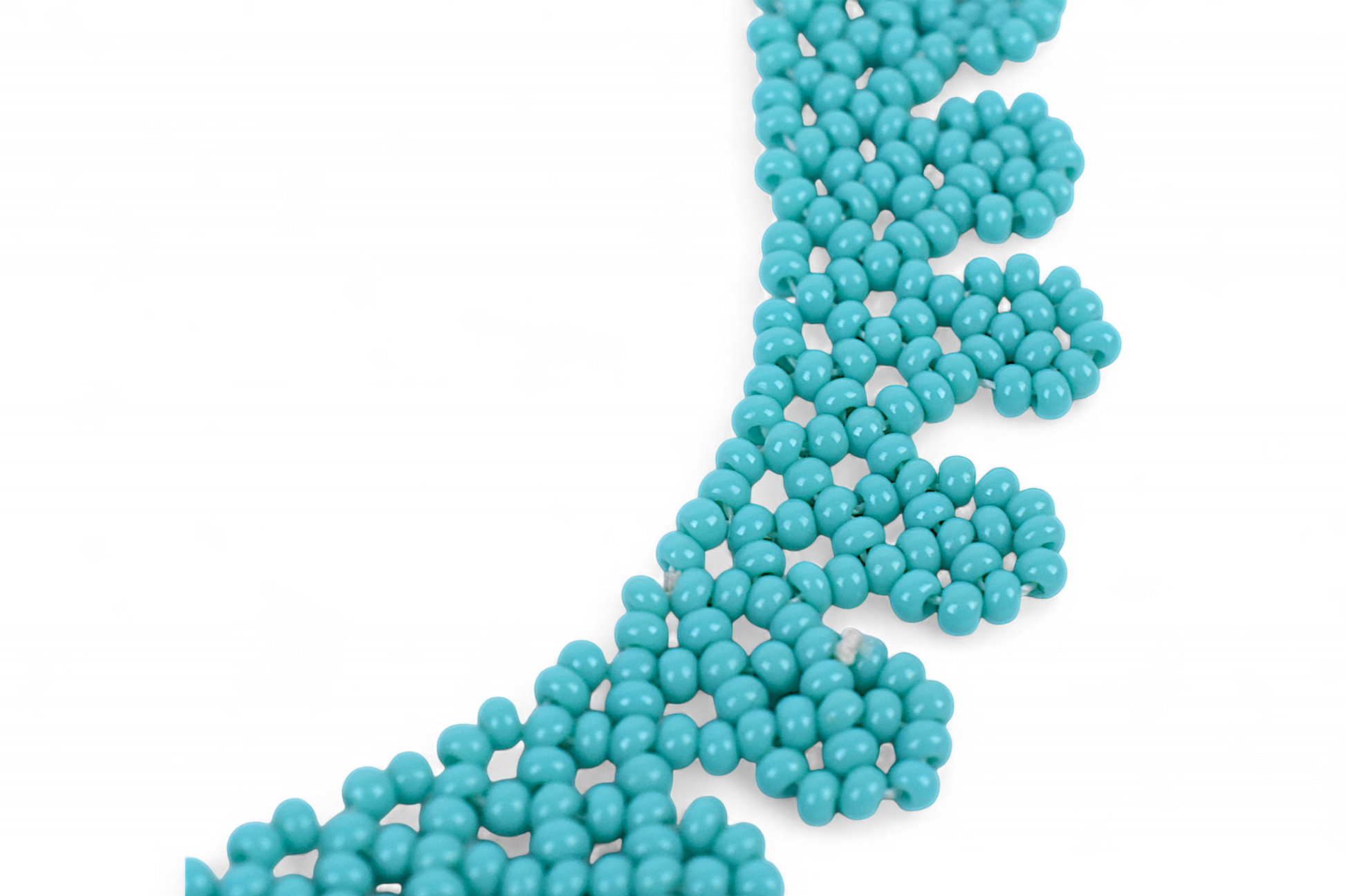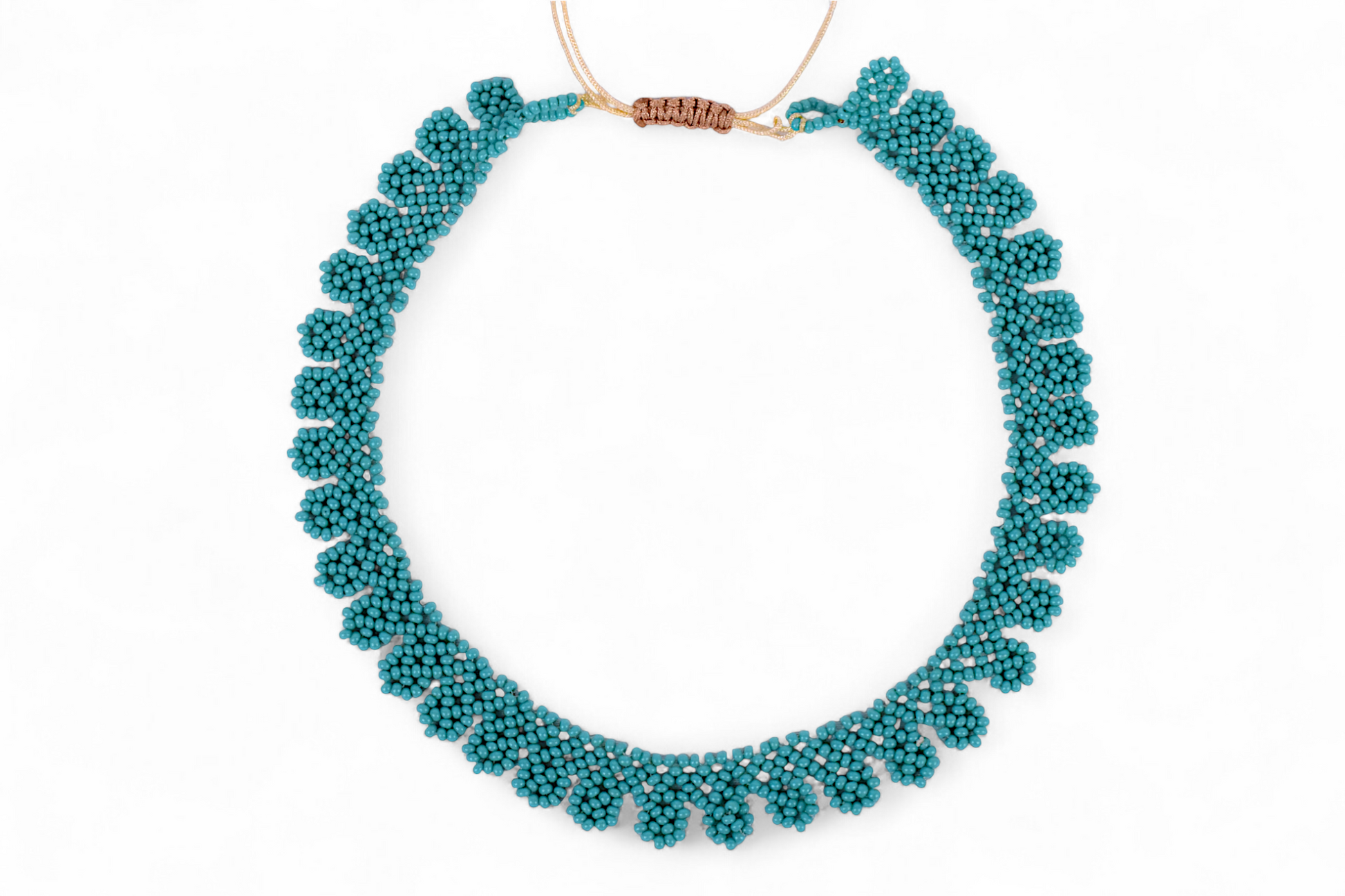 Make a bold yet versatile statement with this stunning beaded necklace. Handcrafted by Indigenous Embera Chami artisans, this piece is created using traditional beading techniques and carefully selected glass beads in radiant shades of turquoise.