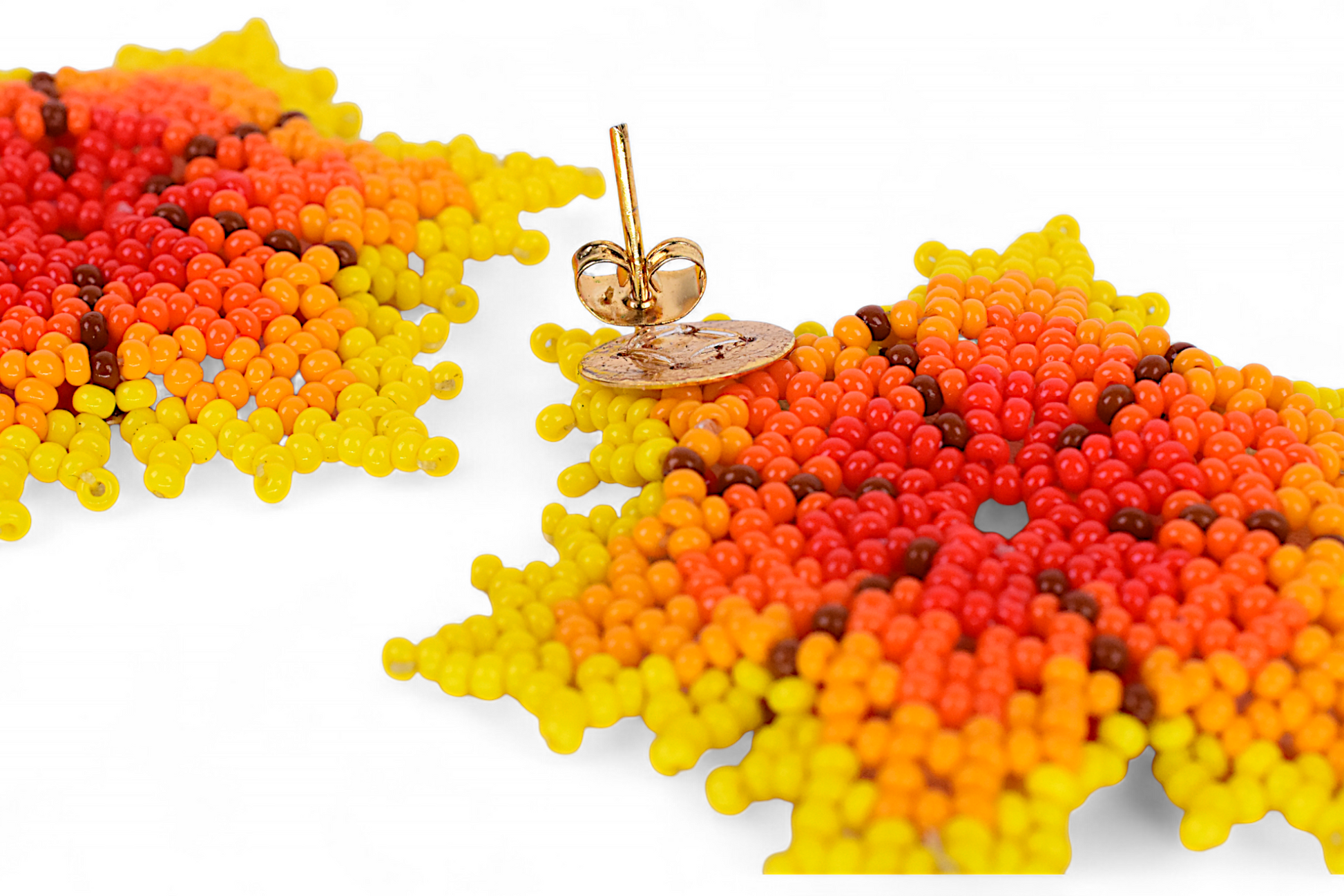 Make a bold and meaningful statement with these stunning floral earrings. Shaped like a blooming six-petal flower, this piece is handmade by Indigenous Embera Chami artisans using traditional beading techniques and carefully selected glass beads in radiant shades of red, yellow, and orange.