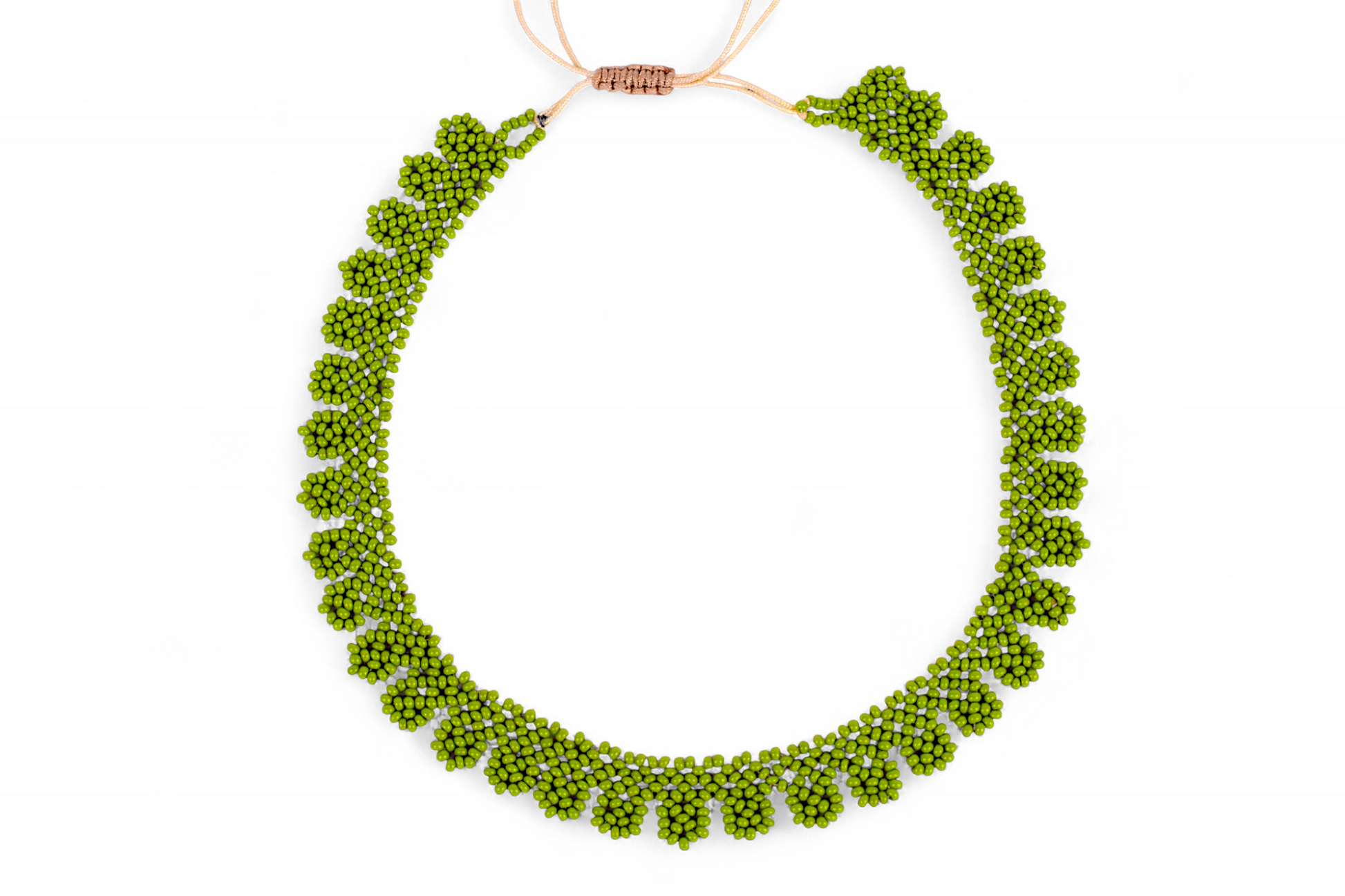 Make a fresh and vibrant statement with this beautiful beaded necklace. Handcrafted by Indigenous Embera Chami artisans, this piece is created using traditional beading techniques and carefully selected glass beads in radiant shades of green.