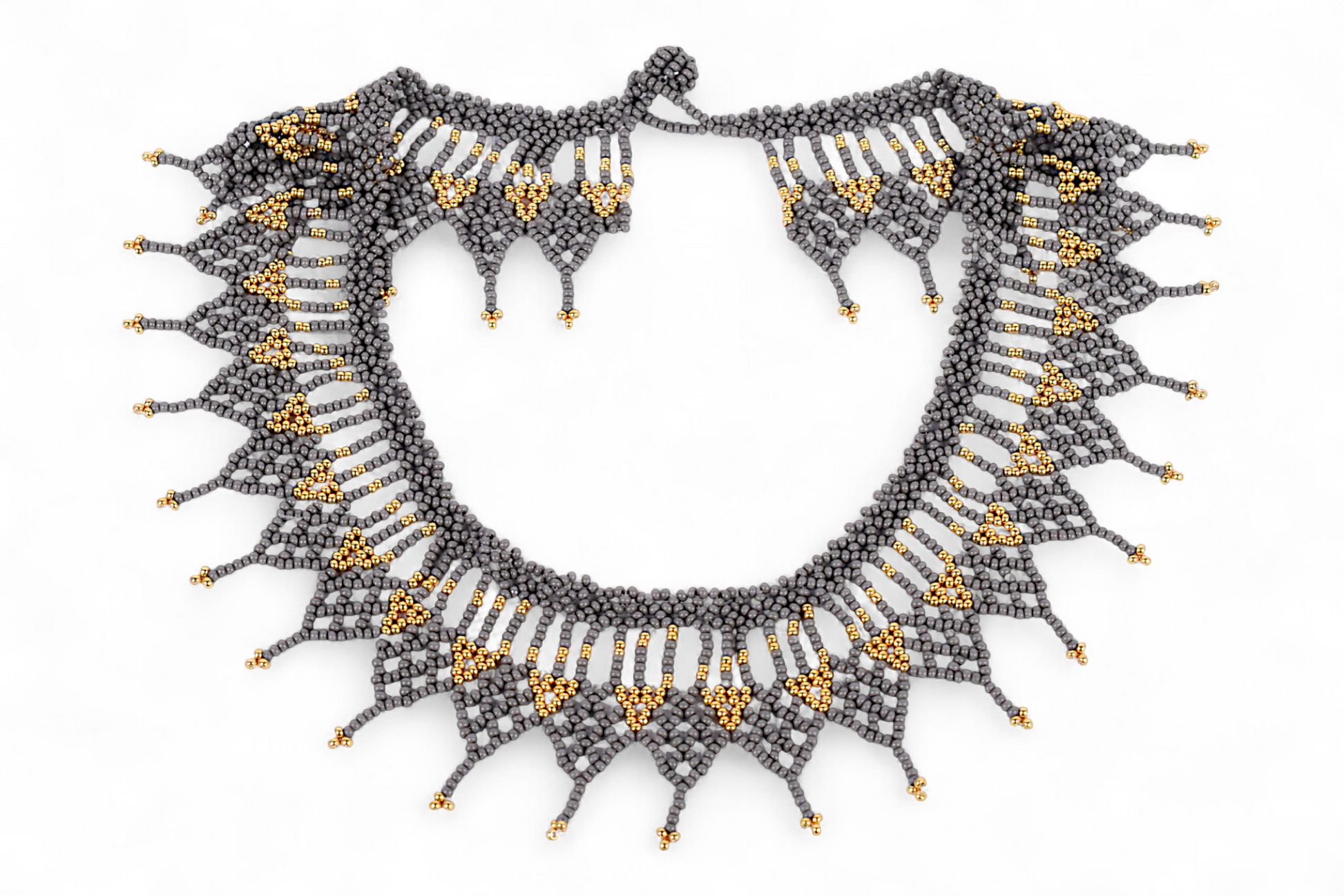 ✨ Grey & Gold Beaded Necklace – Handmade by the Embera Chami Tribe