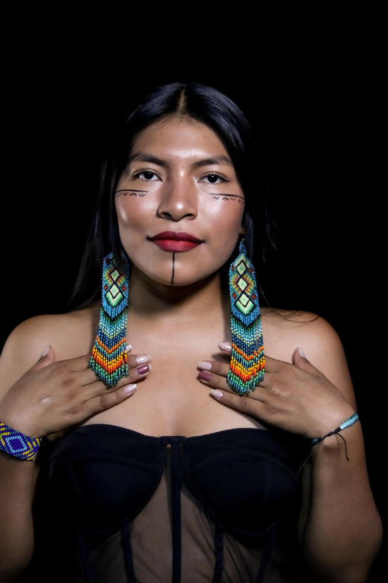These earrings are statement-making yet easy to wear, with soft movement and eye-catching color. Each pair supports the preservation of Indigenous craftsmanship, with a portion of every sale reinvested directly into the Embera Chami community through Danko’s ongoing giveback program. Comes in a soft pouch for gifting or storage.