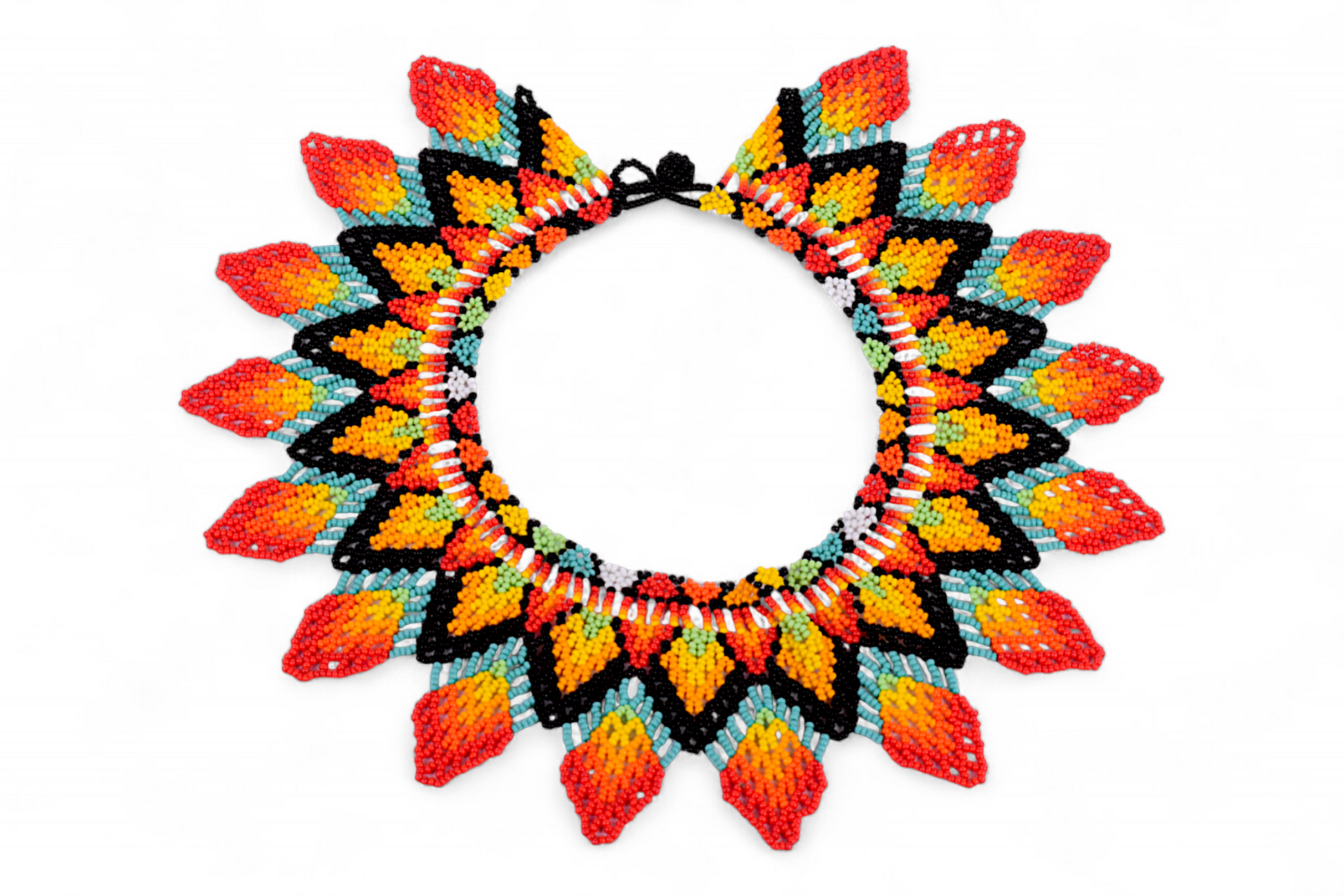 🌟 Sunset Flame Beaded Necklace – Handmade by the Embera Chami Tribe