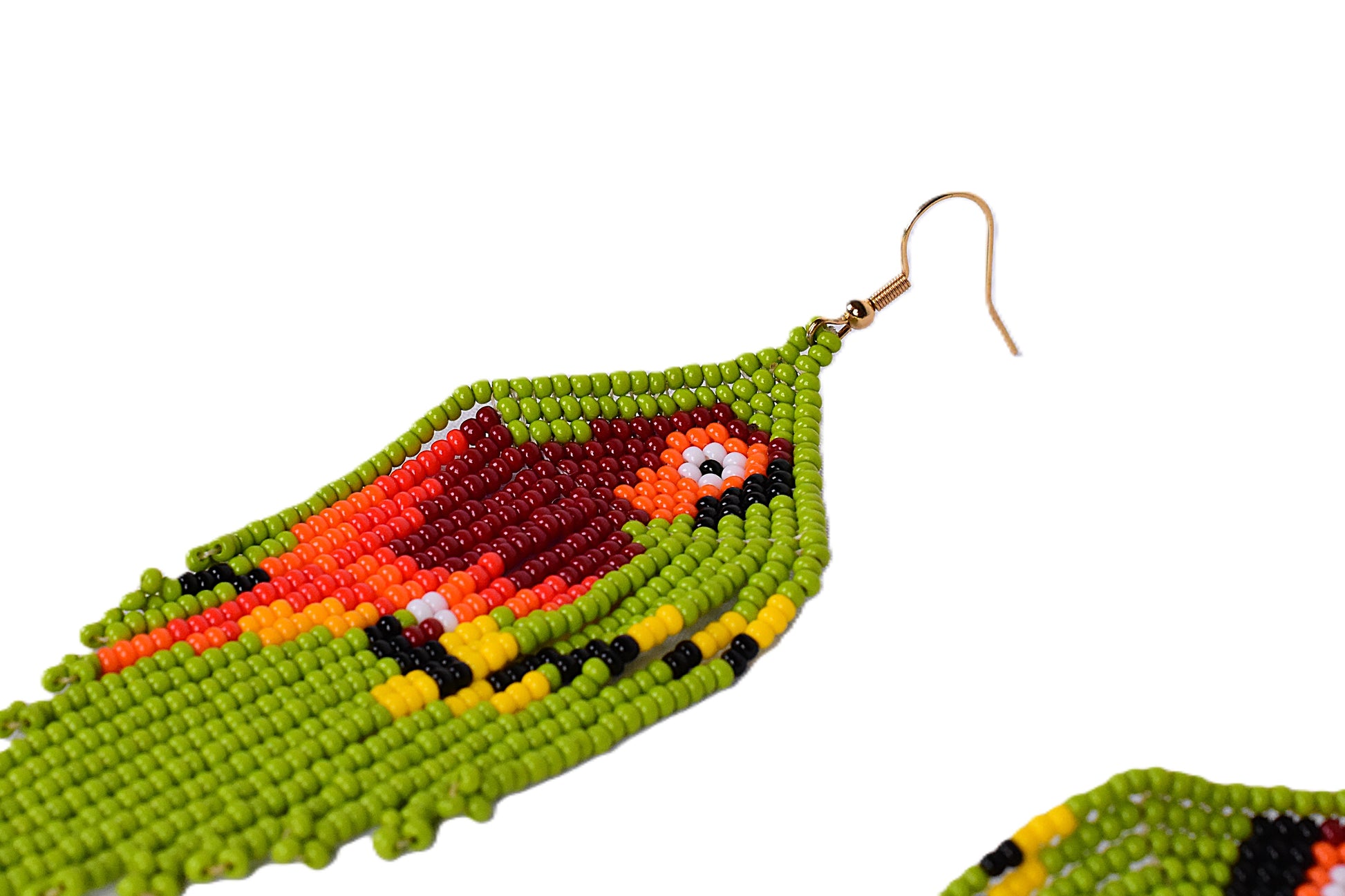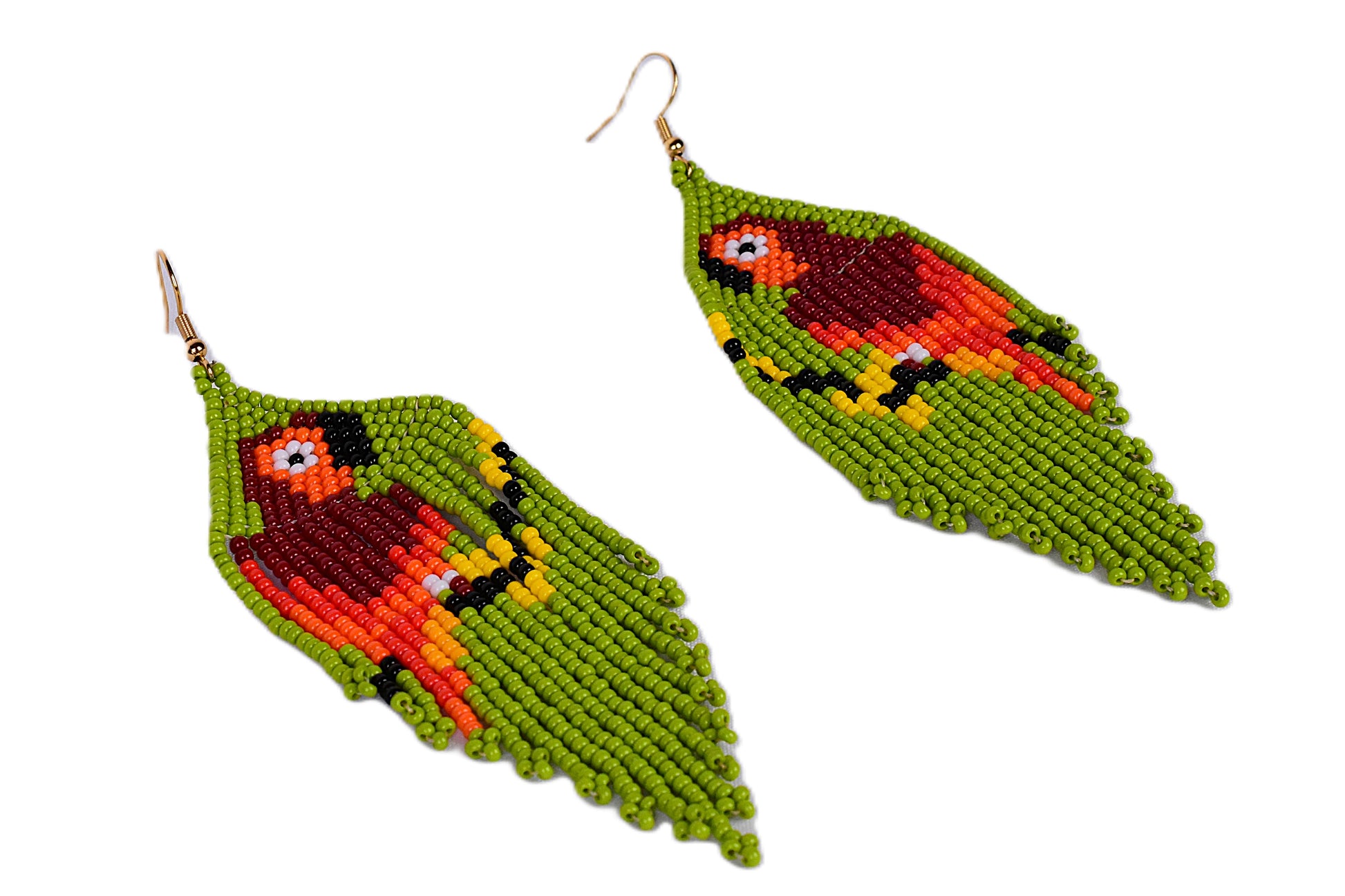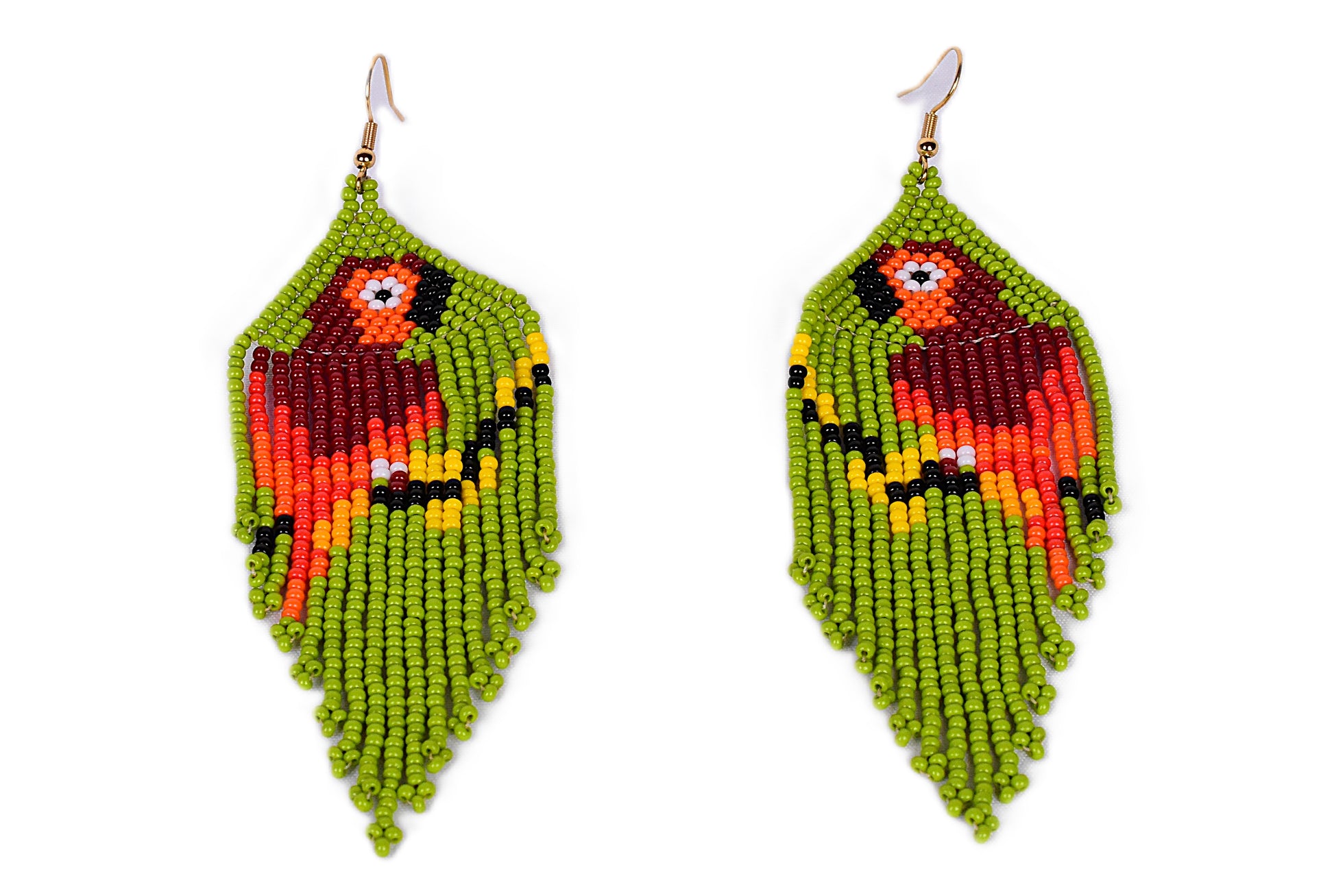 🦜 Beaded Parrot Earrings (Lime Green) – Handmade by the Embera Chami Tribe