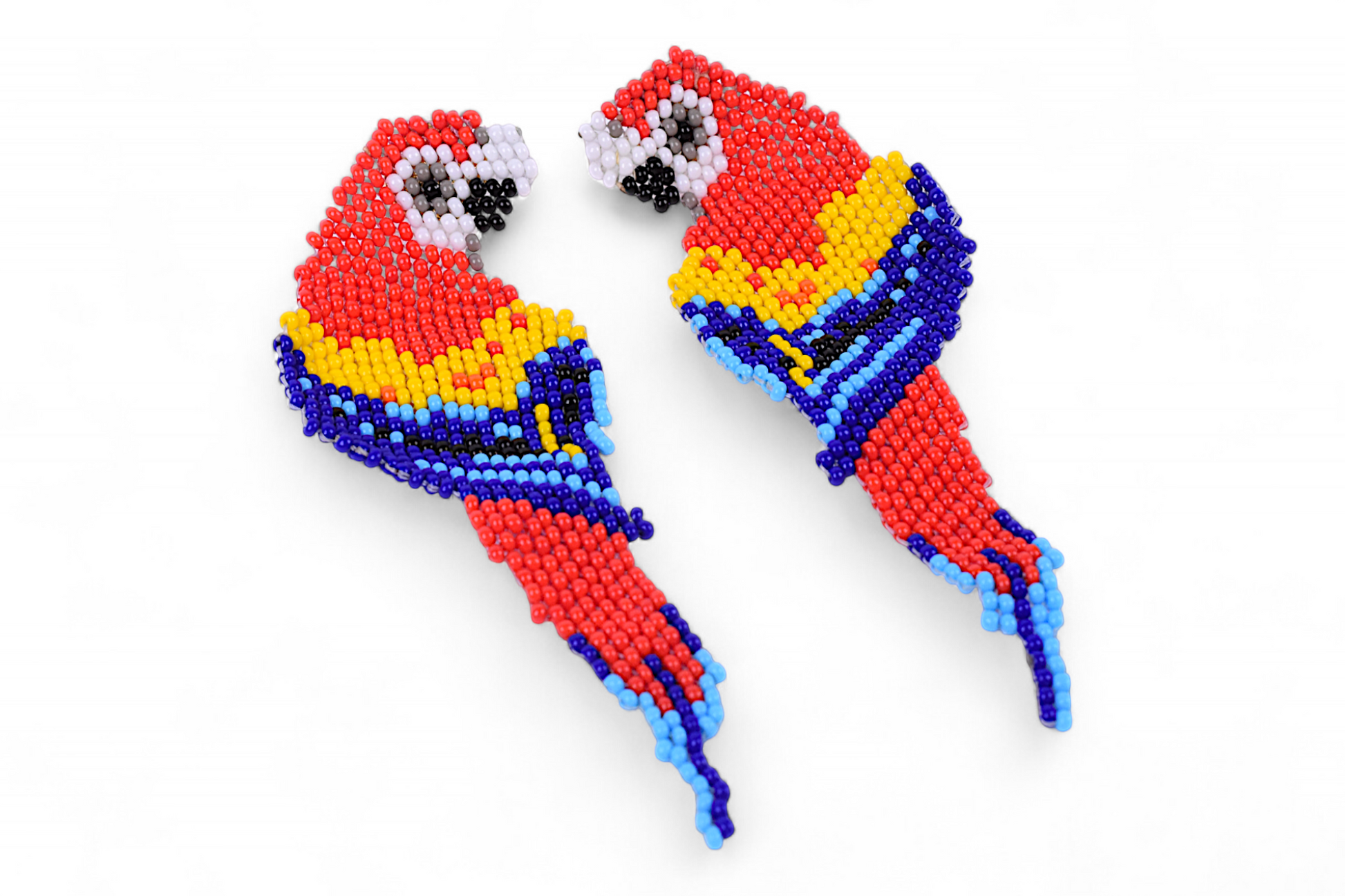 🦜 Parrot Beaded Earrings – Handmade by the Embera Chami Tribe