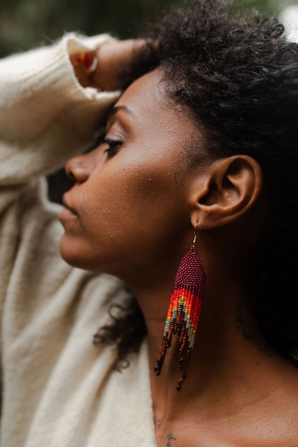 These earrings are statement-making yet lightweight, with vibrant colors that pair beautifully with bohemian, festival, or evening looks. Each pair supports Indigenous craftsmanship, with part of every purchase directly reinvested into the Embera Chami community through Danko’s giveback program. Comes in a soft pouch for gifting or storage.